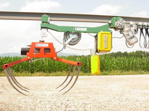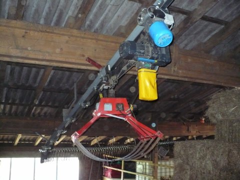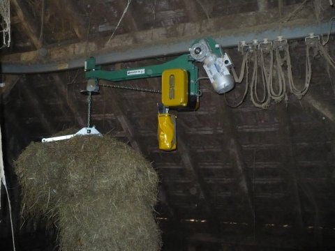 Der Einschienenkran EKZ von Zumstein ist ideal für den Transport von losem Heu, Rund- und Quadroballen.